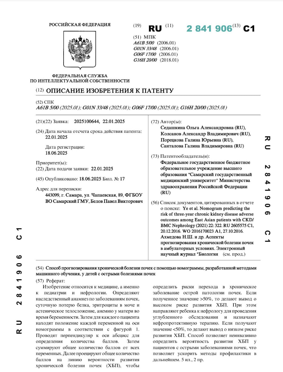 Разработка моделей и алгоритмов с помощью технологий искусственного интеллекта в детской нефрологии